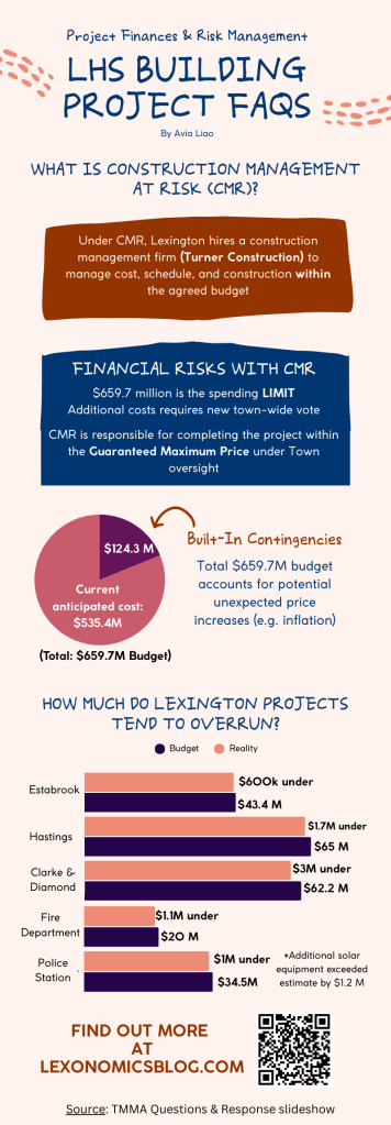 The building project includes built-in safeguards to prevent the project from overspending on its budget, including the use of a construction management firm and the setting of a Guaranteed Maximum Price for the project which requires a new Town Meeting and town-wide vote to permit additional spending.